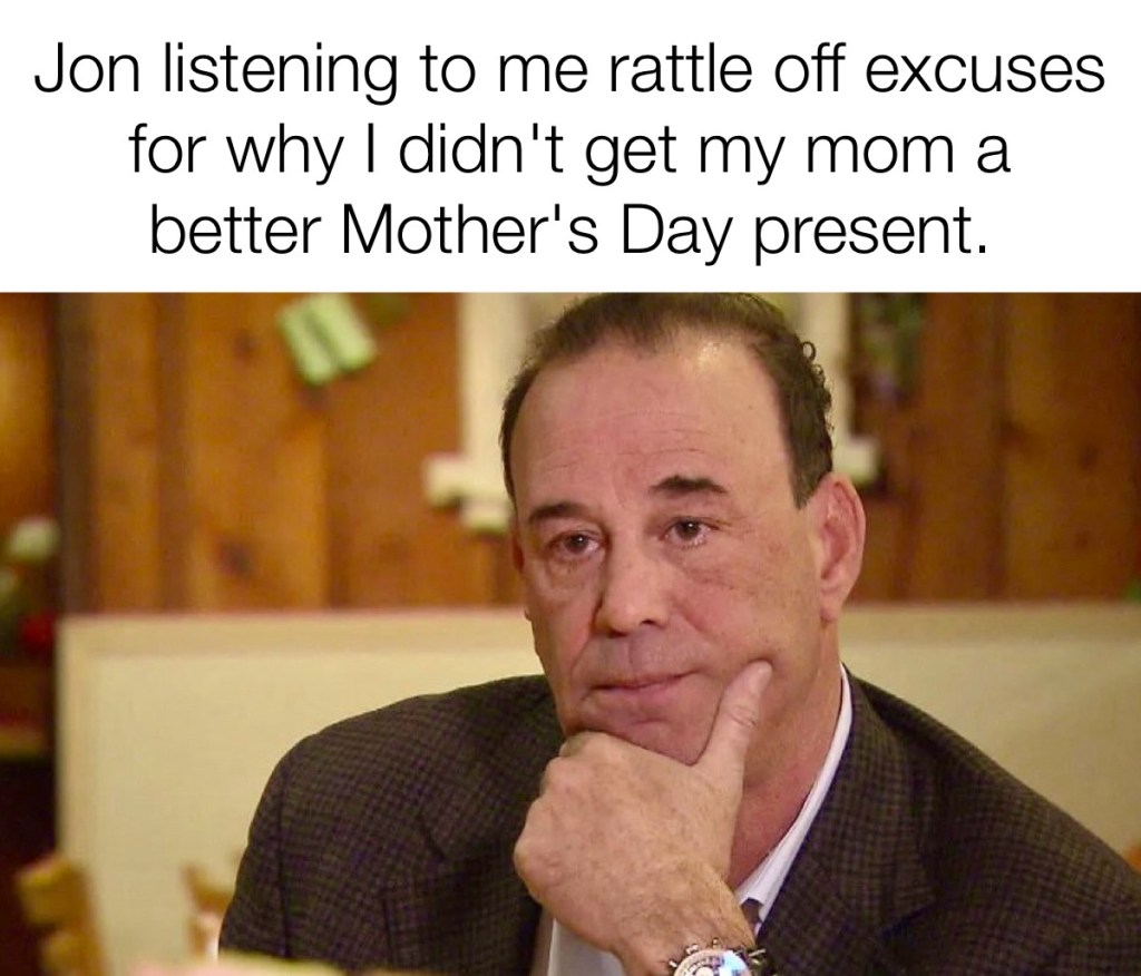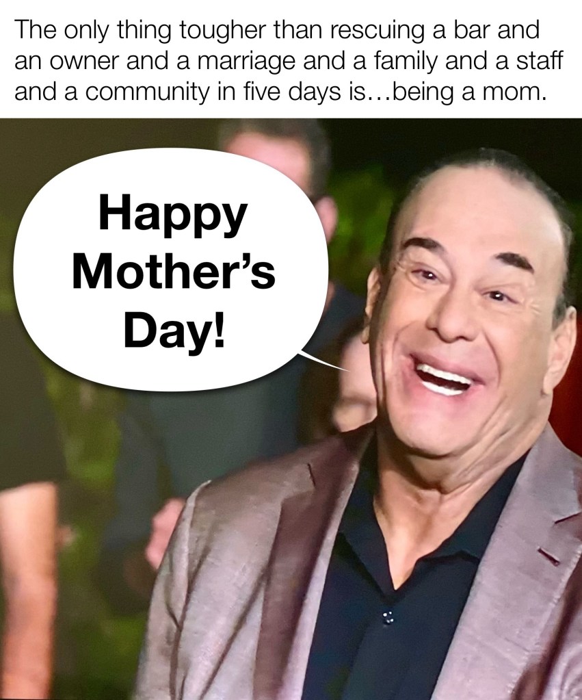 When I think about Jon and Mother’s Day, I not only think about the warm and exciting experience I had with my grandmother at the fancy bar and all the things I learned about the wonderful level of hospitality there from watching Bar Rescue, but I also think about how Jon advocates for women—and therefore mothers—in direct and indirect ways. His respect extends beyond mere sentimentality and ceremony; it’s deeply rooted in his actions and values and is a reverence likely born from an evolving understanding of the role he plays in the quality of the relationships he’s had with the women in his life, particularly his mother.