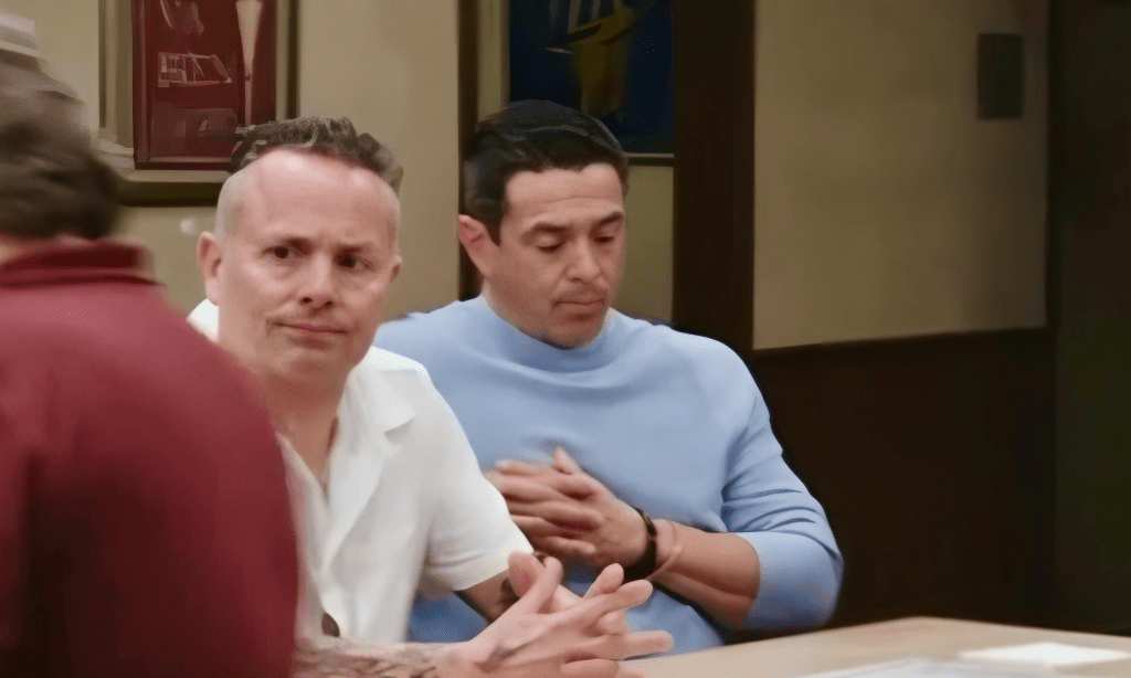 There’s no real break in the conversation because Jon puts on his compassionate voice, the one full of disbelief, “You put your family’s money and future on the line, and this is what you did?” I didn’t notice it the first time, but upon rewatching, I see Tony G shaking his head “no” while Jon is talking, and then looking at Greg like he’s ashamed of him. I get a new laugh out of it, but it gets even funnier when Jon says, “We’re going to eat” like nothing out of the ordinary just happened and they all came in to get a table together for dinner. Greg says, “Okay,” and walks away with Tony G nonverbally admonishing him with a look that says, “You suck.”