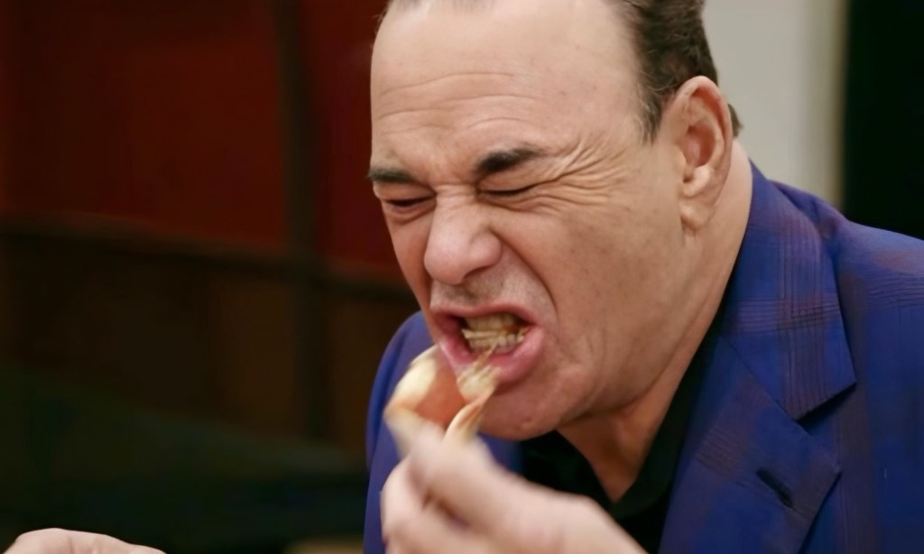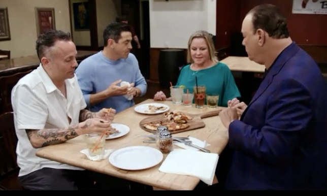 Jon, wipes his mouth and calls Greg over. He says a truism of every episode but especially this one: “I’m not messing around.” He introduces Tony G, explains his credentials, and then asks for Tony’s evaluation. Tony says the pizza is terrible and likens it to dog food.